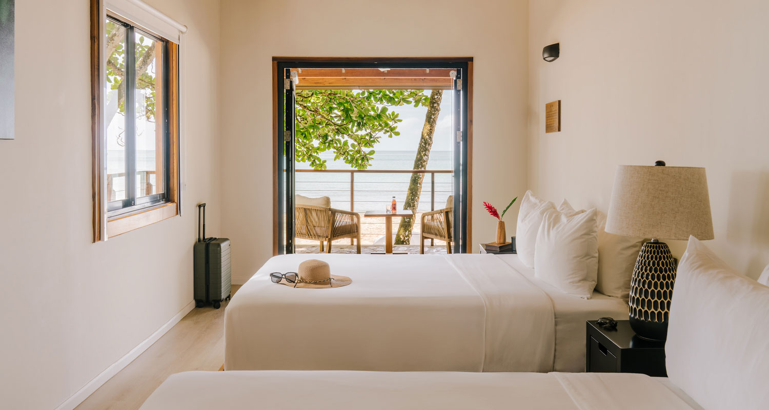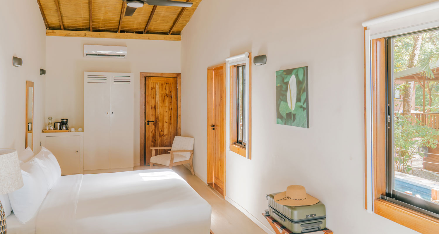 Cosy and intimate, these rooms offer a serene retreat inspired by the calm tide pools where Leatherback hatchlings first meet the ocean. Perfect for couples or solo travelers, each space blends understated elegance with gentle coastal charm, inviting you to rest, refresh, and wake to the soft rhythm of the waves.